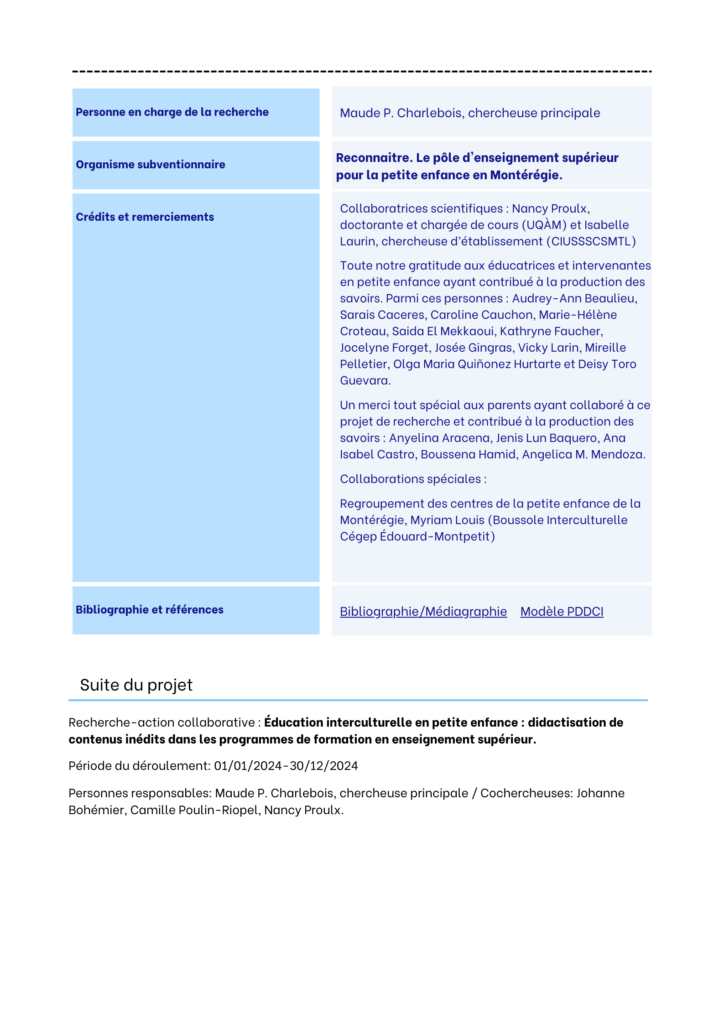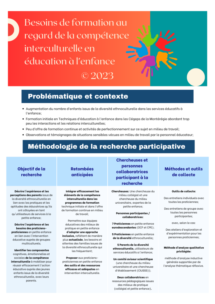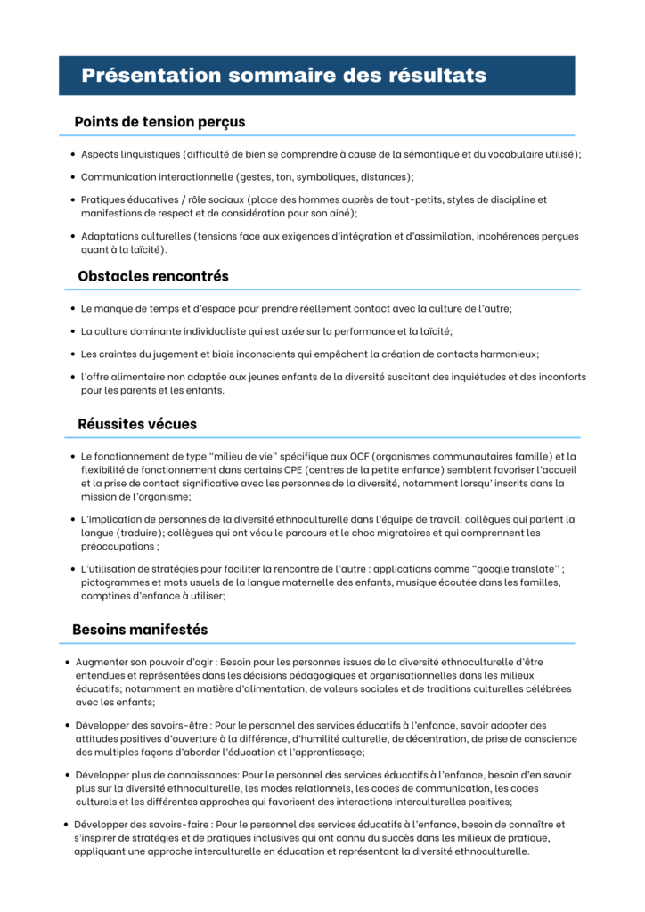 Besoins de formation au regard de la compétence interculturelle en éducation à l’enfance (PHASE 1)